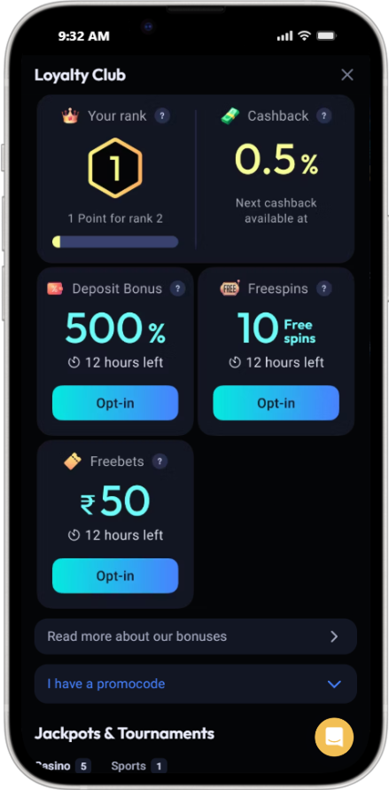 This bonus payout is given to new players, and the payout has been set to Rs 300. The bonus payout has a wager instruction of x60 for Sports + Casino.- This bonus can be used to wager on any sporting event or game.