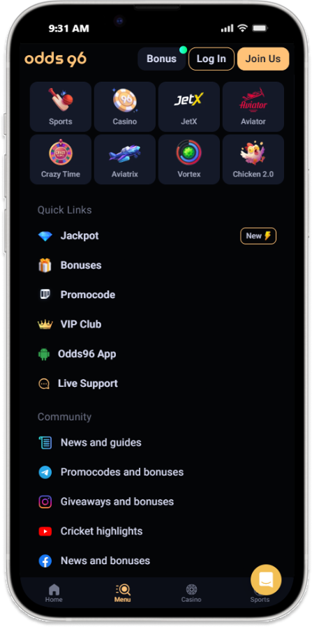 In terms of ease of use, the Odds96 app and the official site have zero differences. Both app and site provide seamless betting and gaming experiences.
