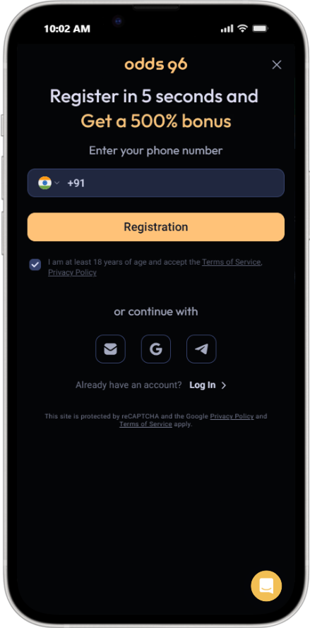 Users of Odds96 can access the APK Bonus of 50 credits and also receive a Welcome Bonus of 500% which has a wager instruction of x60 for Sports + Casino and 500% up to ₹100,000.